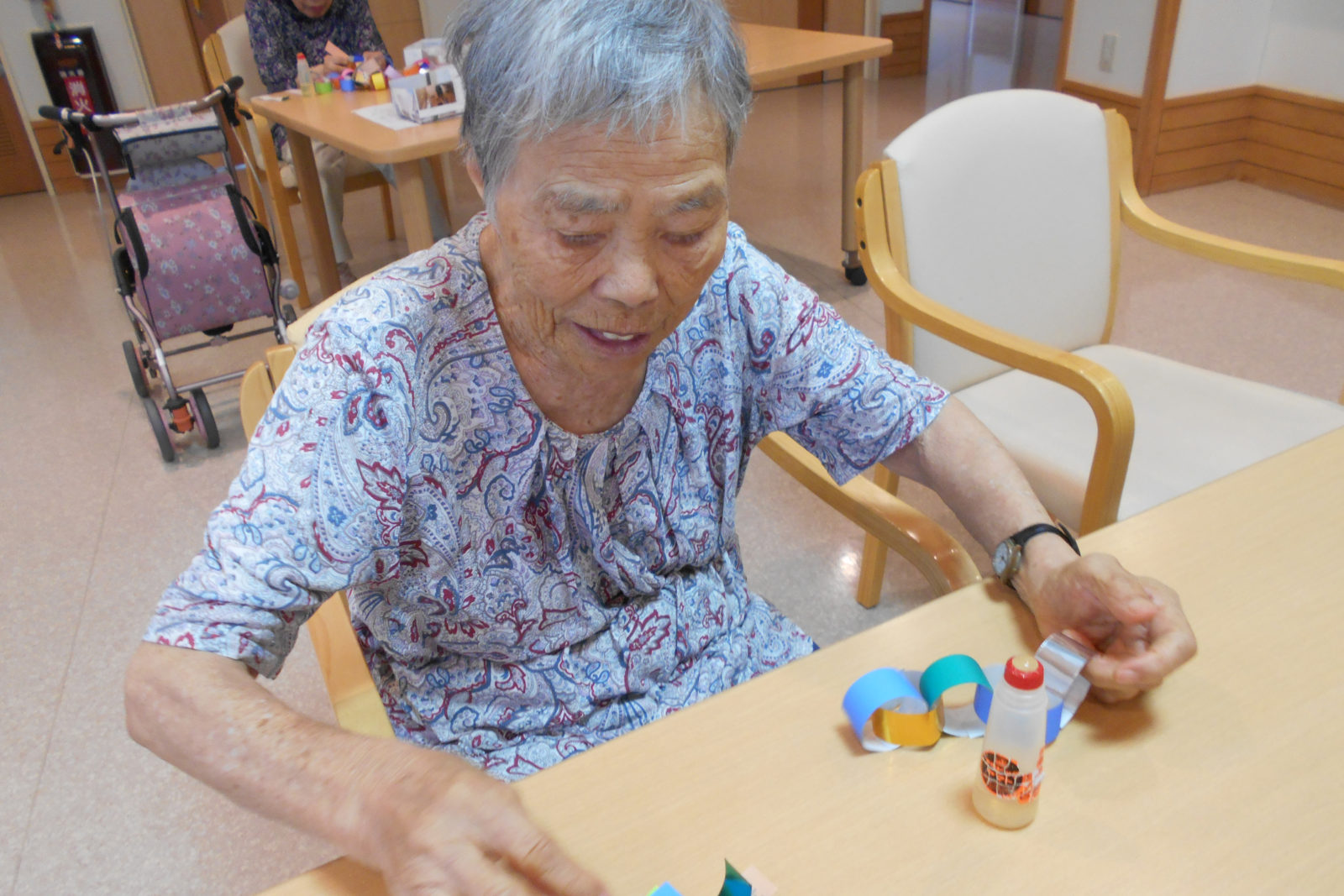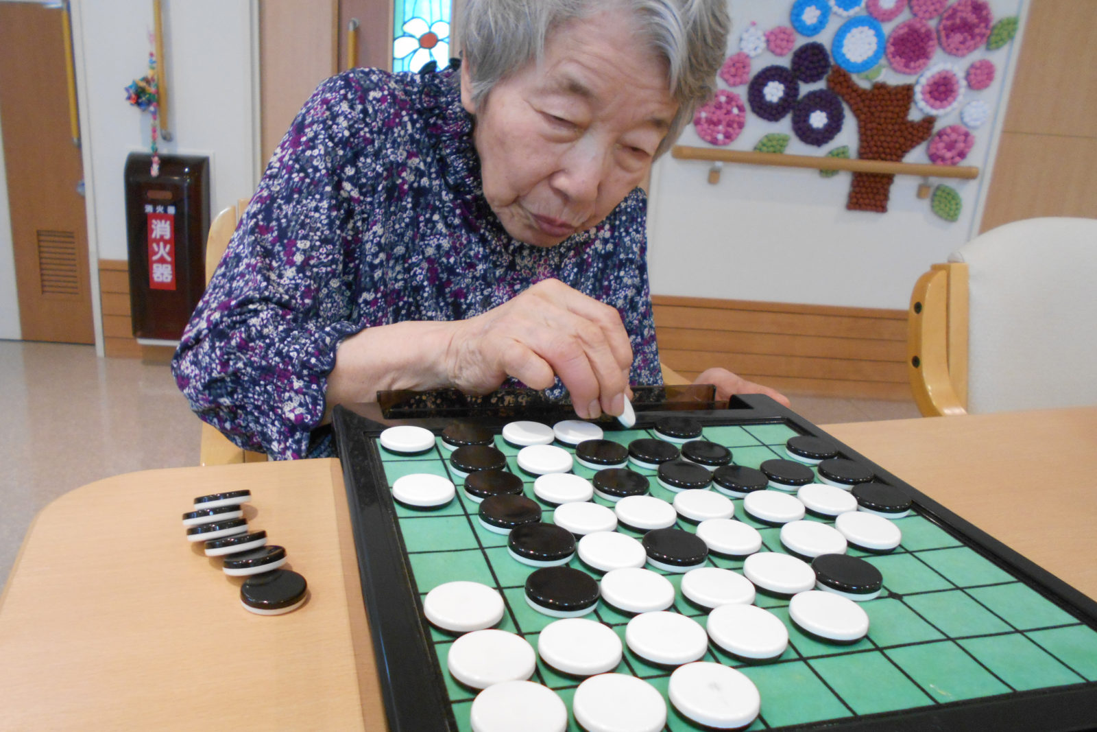 ショートステイご利用者を対象に、ご利用中を楽しく過ごして頂けるよう、様々な余暇活動を行っています。折り紙で工作をしたり、オセロを楽しんだり、アクセサリーを作ったりと、楽しく余暇の時間を楽しんで頂いております。